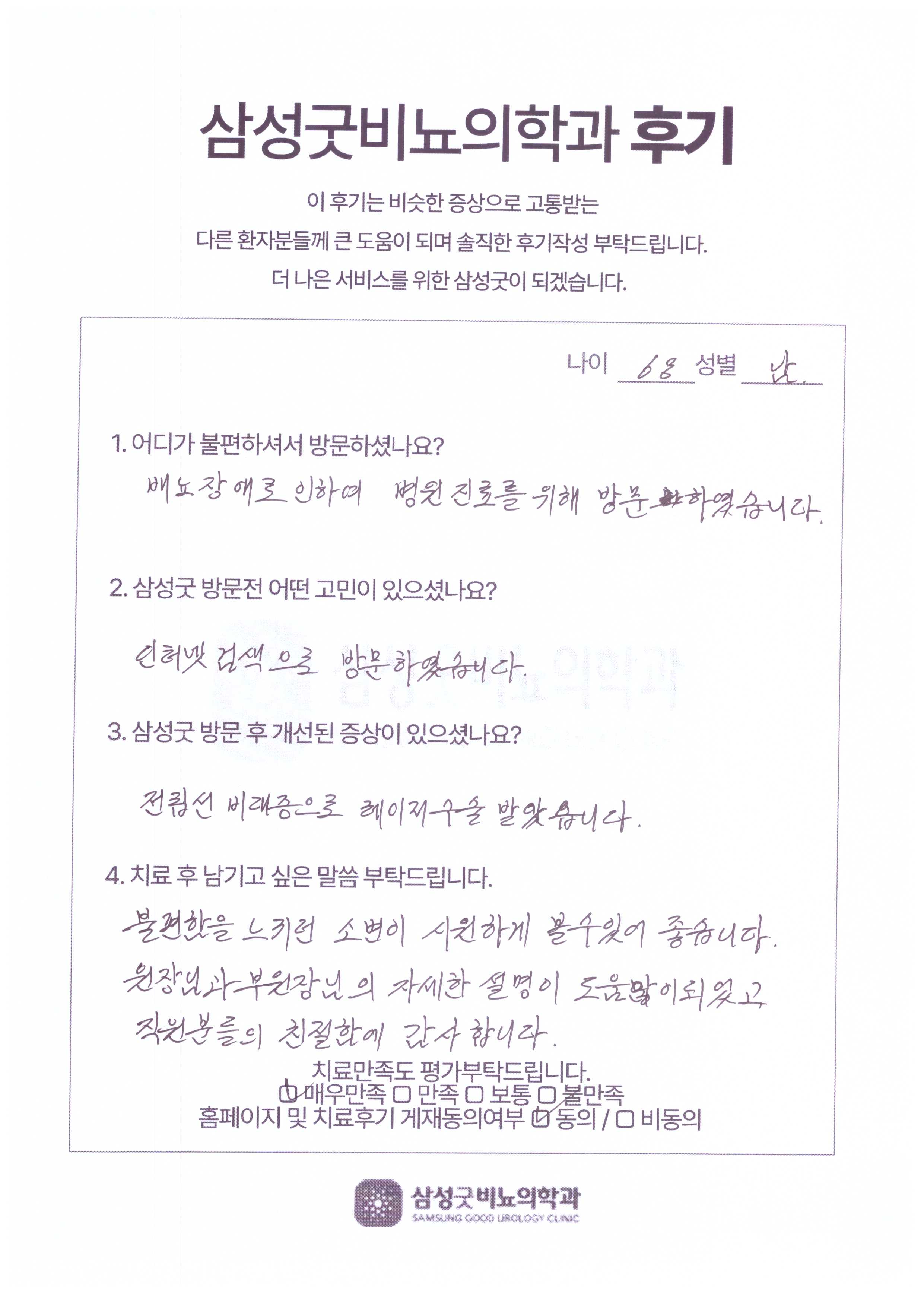 전립선비대증으로 배뇨장애 약 호전 x - 홀렙수술 진행함