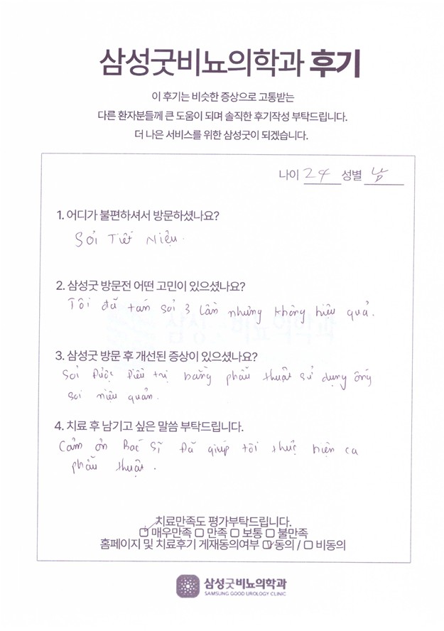 Sỏi thận, sỏi niệu quản - Nội soi lấy sỏi (Tiếng Việt) (베트남분)타병원 2회 쇄석 후 본원 결석제거술